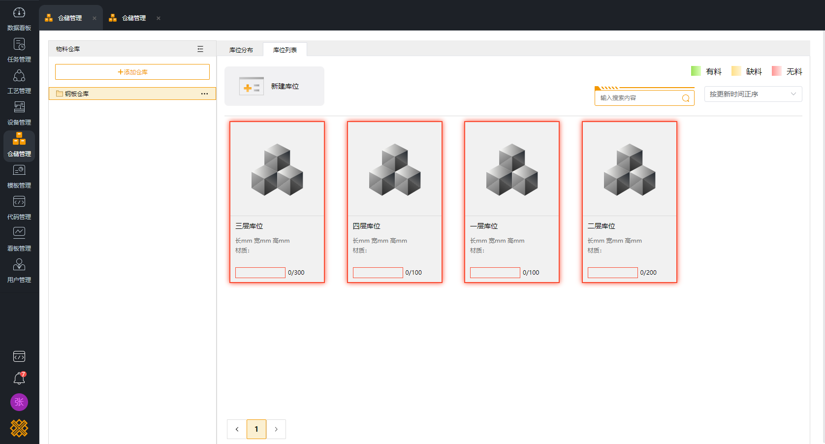 自动化料库,指在不直接人工干预的情况下,能自动地存储和取出物料的机电一体化系统。通常以多层货架构成,将物料存放在标准的料箱或托盘内,然后由传送带、巷道式堆垛起重机、自动化出料机构、机械手等设备对任意货位实现物料的存取操作,并利用计算机实现对物料的自动存取控制和管理。比如全屋定制的板式家具线上的自动大板仓、钣金生产线的激光切割单元给料仓等。