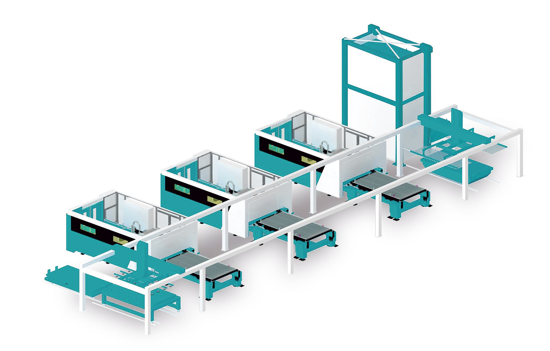 自动化上下料系统和料库系统的布局可以根据客户现场情况灵活适配,模块化的设计在保证布局灵活的同时,使整个系统具备后期可扩展性。