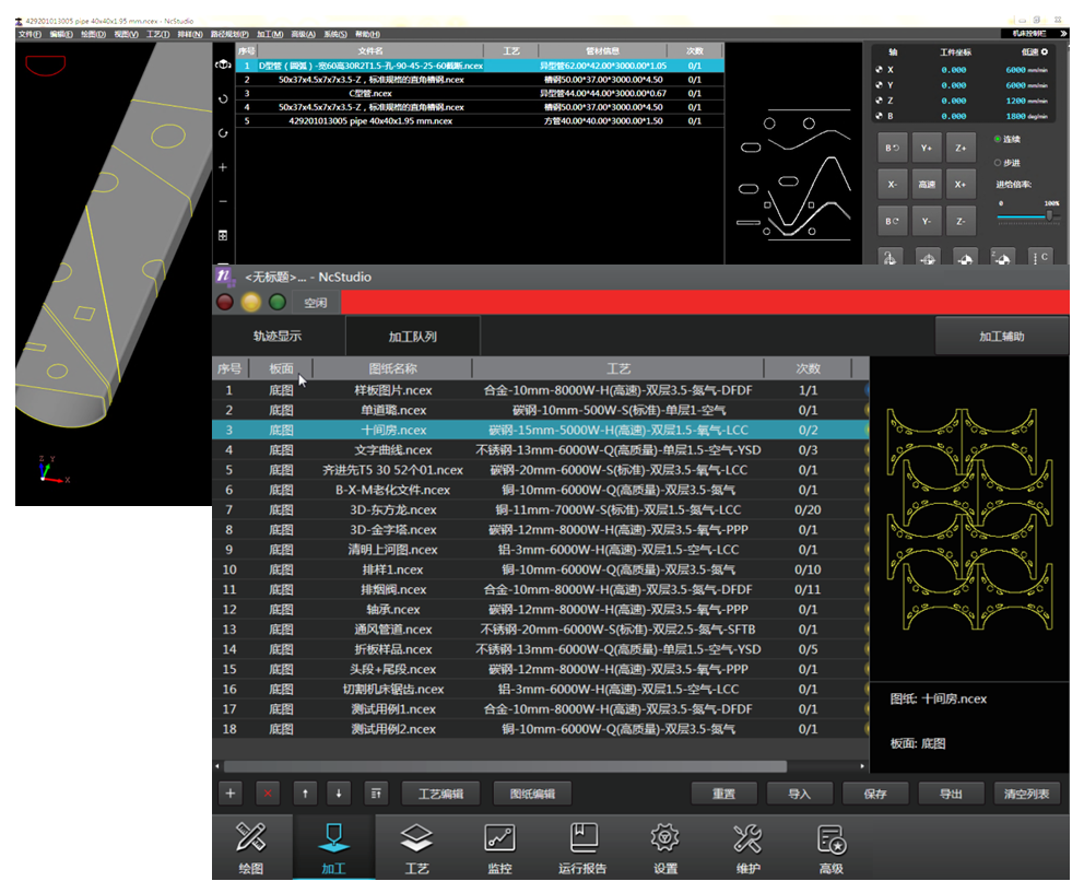 系统支持文件自动拆分、双梁异步加工;实时判断横梁位置,主动避障、防撞。