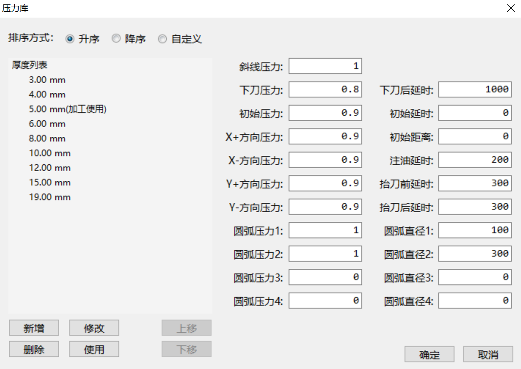 针对不同类型/厚度的板材,提供不同的切割压力方案,方便操作员根据需求快速切换。