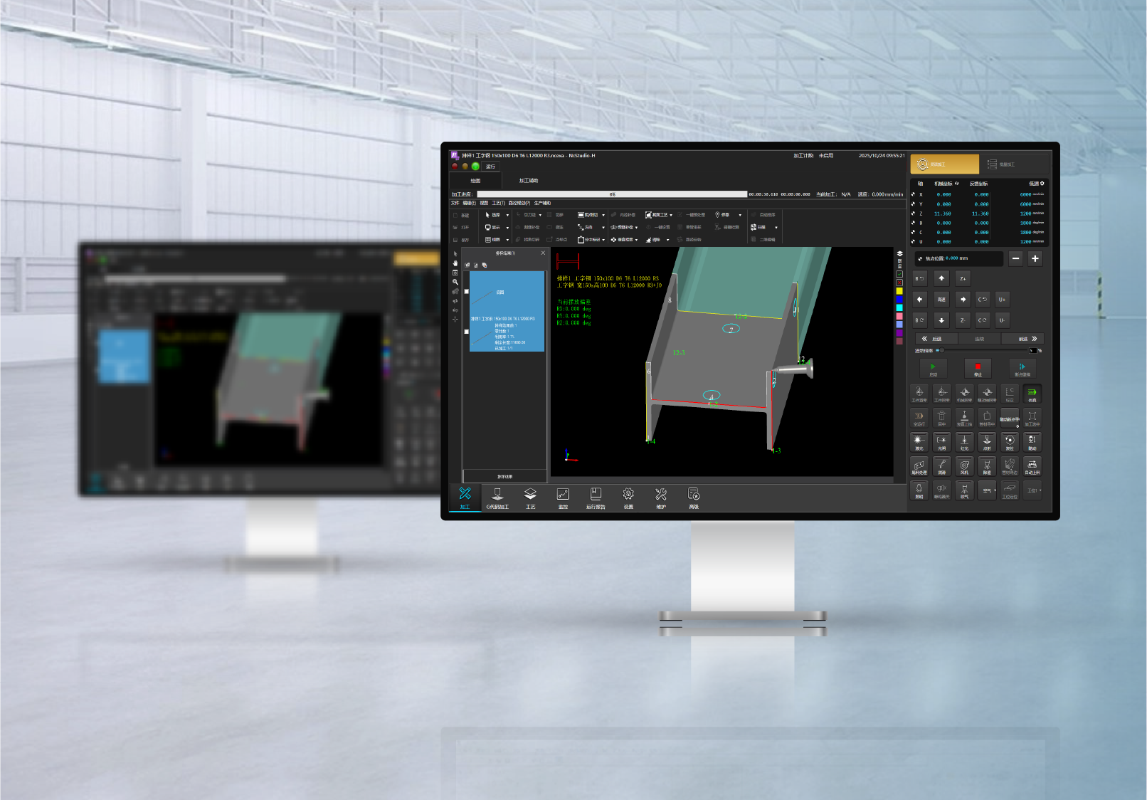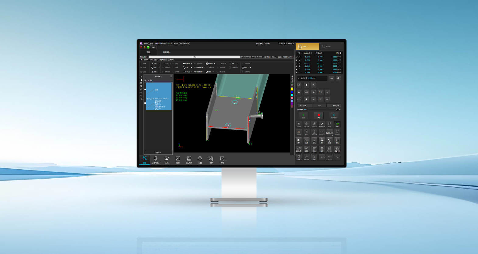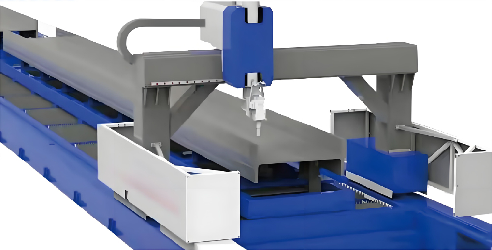 维宏FA30A型钢三维五轴激光切割系统,专为钢构行业设计,适配超过12kW的高功率激光器、五轴联动机床结构及灵活的切割头设计,能够精确加工工字钢、槽钢、角钢、U肋等其他异型拉伸体管型,实现截断、腹板斜切、翼板坡口、打孔和过焊孔切割等复杂加工。