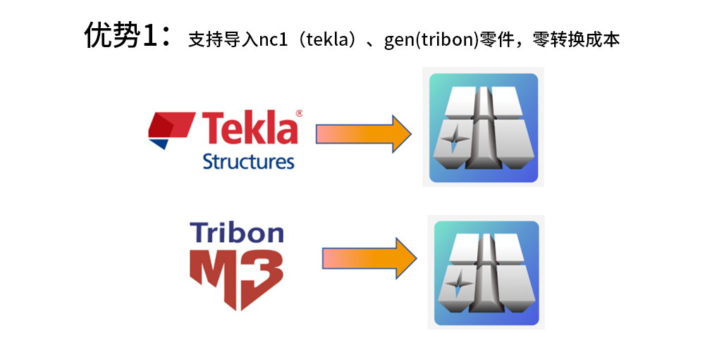 支持导入nc1(tekla)、gen(tribon)零件,零转换成本
