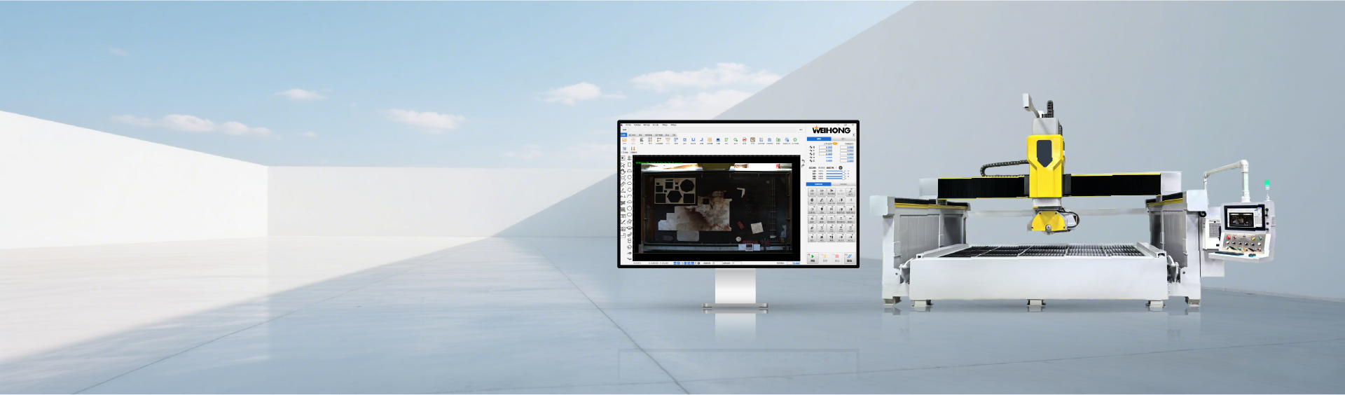 维宏股份推出桥切+水刀/雕刻复合机型、伺服增压泵及伺服驱动器三位一体的整体解决方案,深度融合CNC+CAM,实现全流程一体化智能控制,显著提升石材加工的精度与效率,满足高端石材制品对工艺的严苛要求。