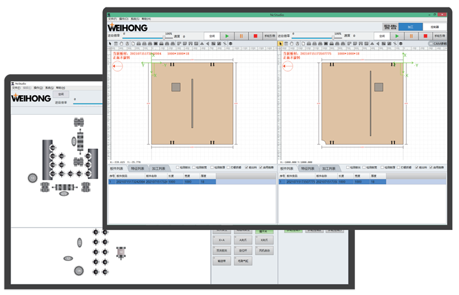 打通了从营销设计到拆单的数据对接,加上维宏智能CNC的文件解析优化套料,避免繁琐对接流程,大幅度提升加工效率,做到了前后端一体化。