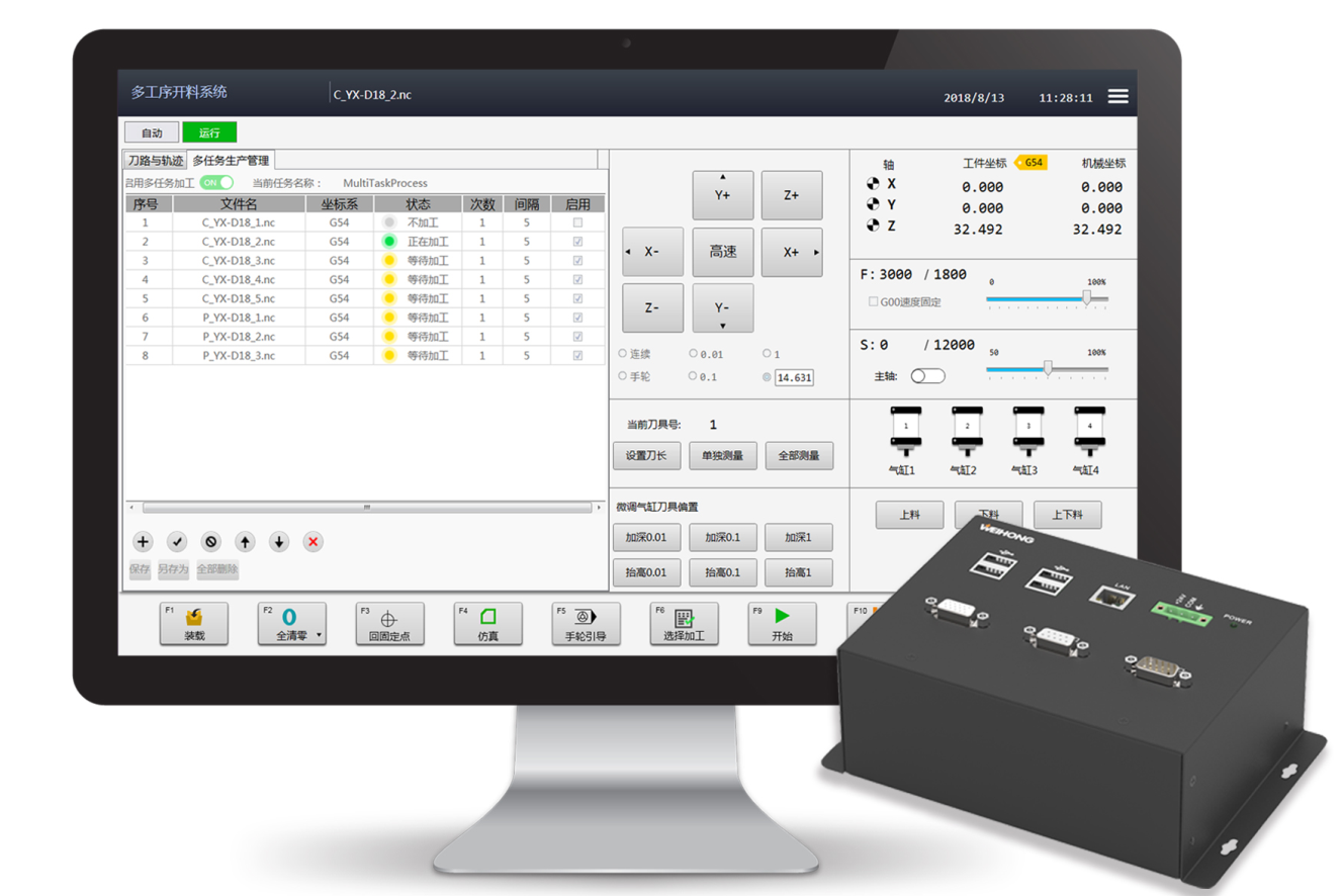 支持多工序、上下料、换刀、多任务生产管理、多工位等功能